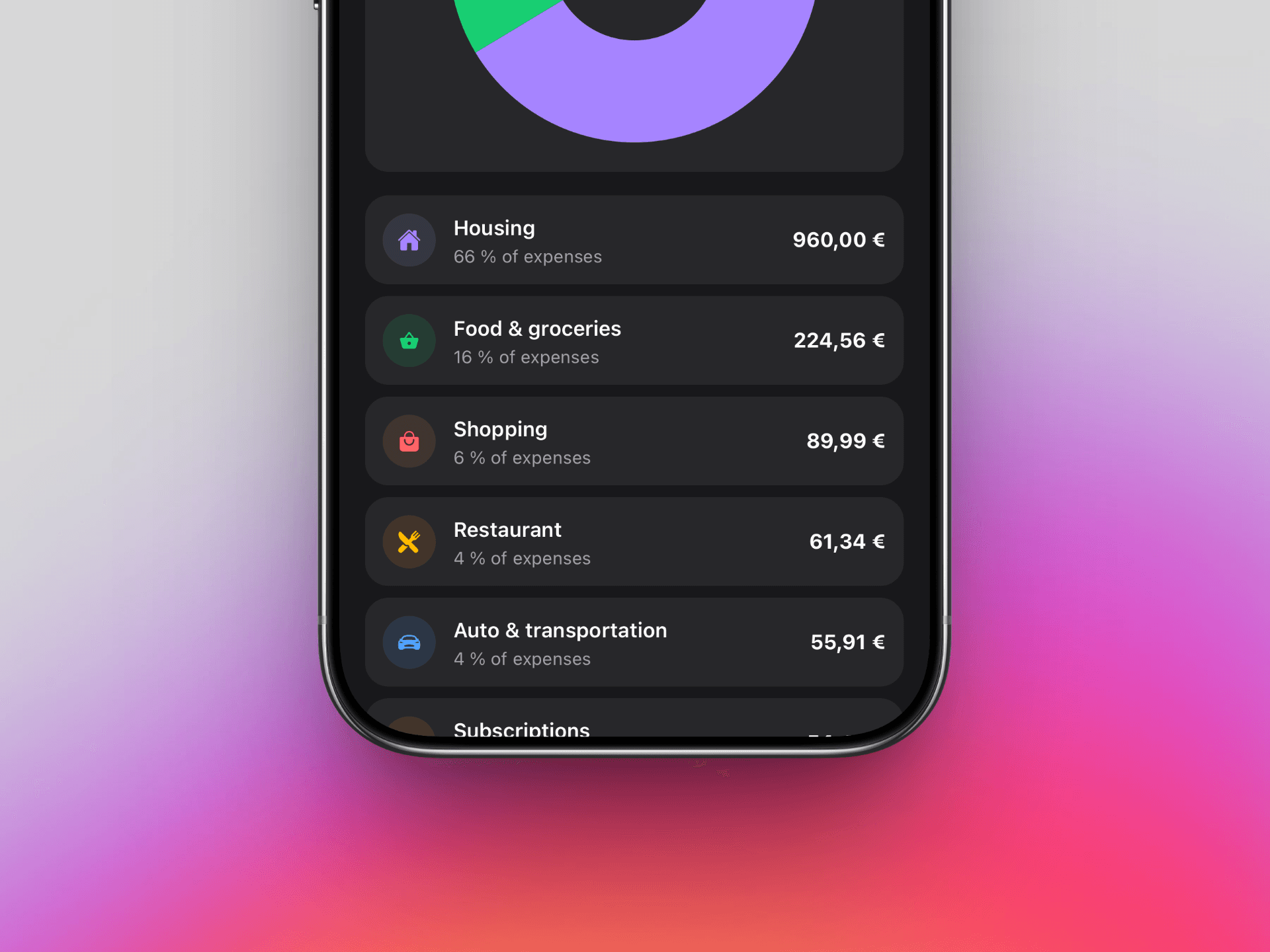 Trya te crée un budget sur mesure basé sur la méthode 50/30/20, adapté à ton revenu, ta situation et ton mode de vie. La catégorisation automatique de tes transactions te fait gagner du temps au quotidien.