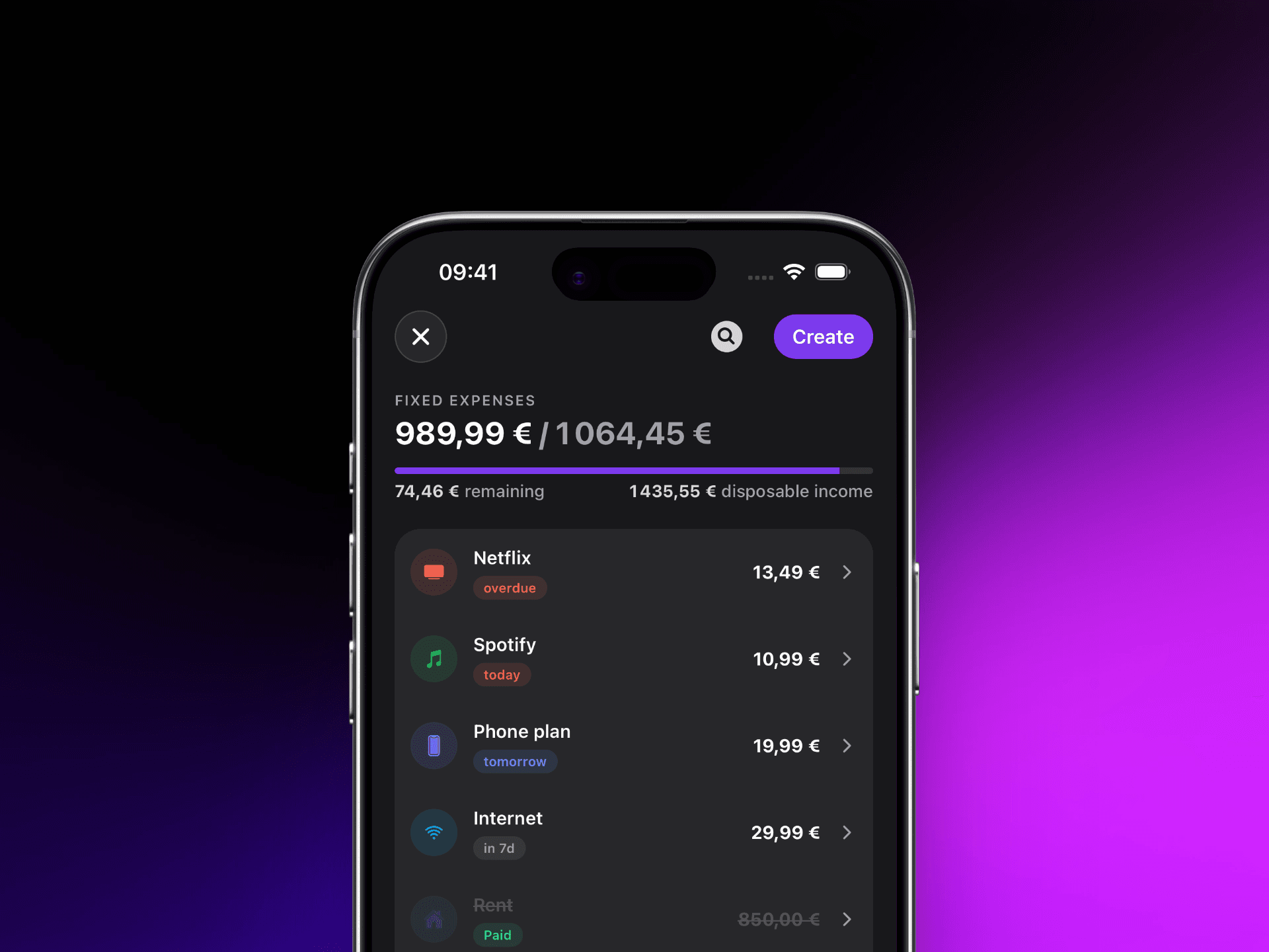 Suis tes dépenses récurrentes chaque mois : loyer, abonnements, assurances, crédits. Trya te montre ce qui a été payé et ce qu'il te reste à régler.